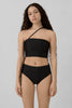A versatile tankini top featuring a sleek single detachable strap and rouched side seams. A multi-functional design that can be worn in and out of the water as a classic boob tube, sleek halter, or minimal bandeau.