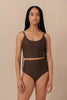 A sleek tankini design, featuring thin straps, a built-in shelf bra for added support and a flattering scoop neckline. Suitable for both A to D+ cup sizes. Whether worn for swim, stretch, or all-day ease, the Ran Tank is a multi-functional piece designed to move with you.