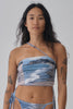A versatile tankini top featuring a sleek single detachable strap and rouched side seams. A multi-functional design that can be worn in and out of the water as a classic boob tube, sleek halter, or minimal bandeau.