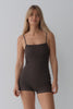 Cut from premium recycled nylon featuring minimalist single back strap that stays put in the surf, removable padded cups and a flattering short leg shape.